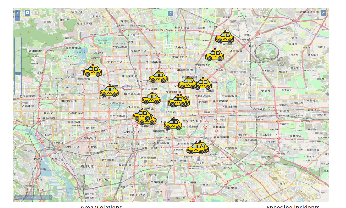 - Fullstack application that does stream processing of taxis positions in Beijing.